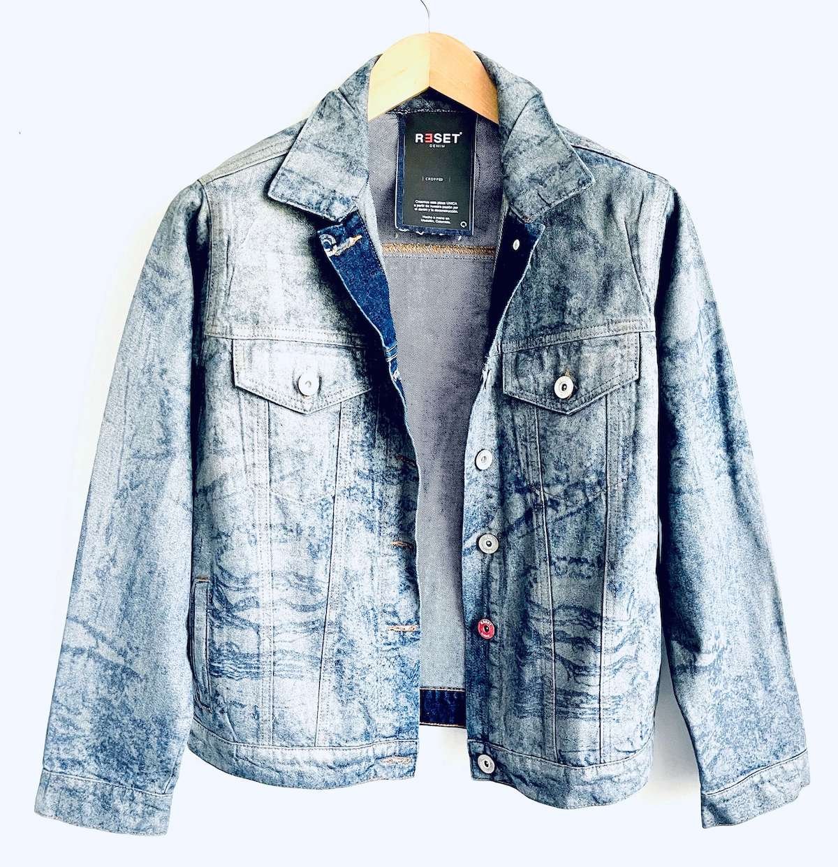 + Lavado eco acid wash y resina efecto cuero.